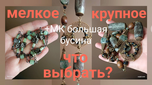 Дерево, стекло и камни. Небольшой МК большая бусина #украшенияскамнями #бусы