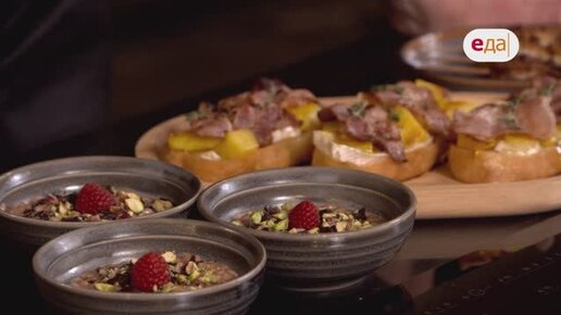 Брускетты с тыквой, ризотто с шоколадом и шашлычки из креветок | Антипасти