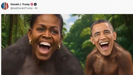 Трамп опубликовал видео с Бараком Обамой и его супругой в образе обезьян