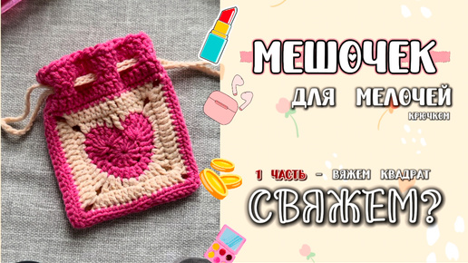 Свяжем? Мешочек для мелочей 1 часть. Вяжем квадрат с сердцем. Пошаговый видео-урок