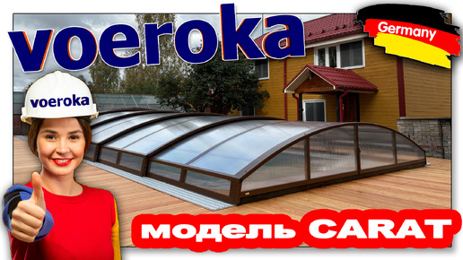 Павильон для бассейна модель CARAT 10,7х4,8х0,9м. Цвет профиля Коричневый. Прозрачный поликарбонат.