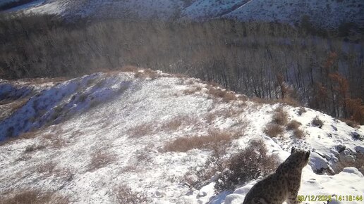 Самка снежного барса по имени Дарья в Туве во время брачного зова.