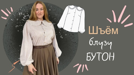 Шью женскую блузку Бутон с красивым воротником и пышными рукавами.