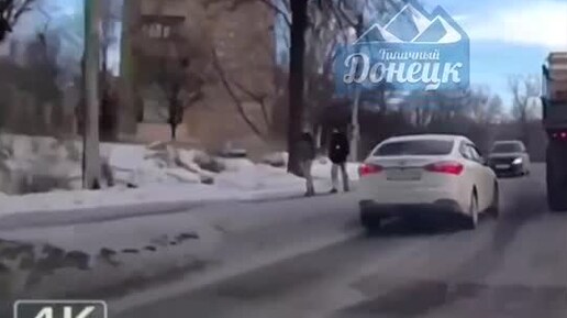 Легковучшка чуть не сбила пешеходов из-за вылетевшего на встречу лихача
