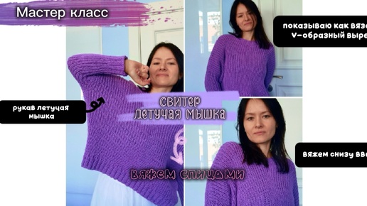 Мастер класс Свитер спицами Летучая мышка снизу вверх
