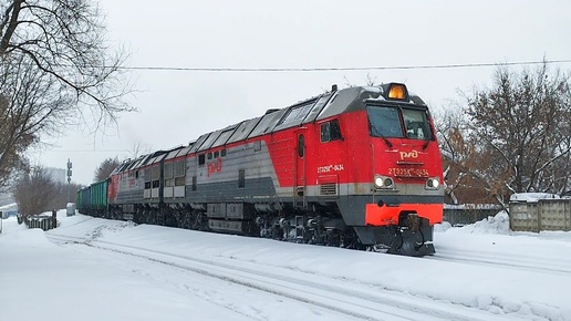 Тепловоз 2ТЭ25Км-0434 с вывозным грузовым поездом заходит на станцию Перово.