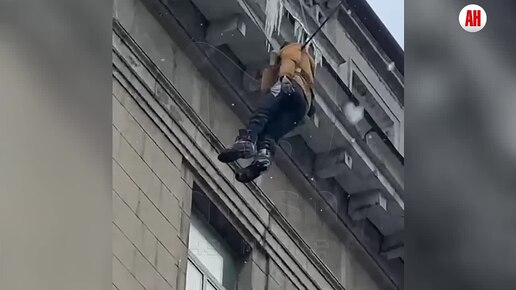 Дворник сорвался с крыши и повис на проводах дома в Петербурге.