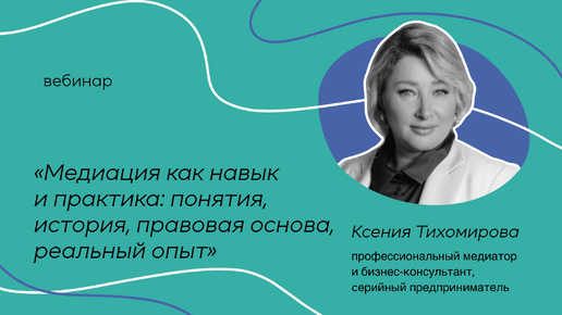 Вебинар. Медиация как навык и практика: понятия, история, правовая основа, реальный опыт