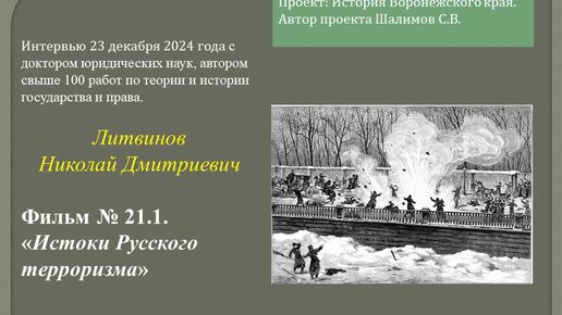 Фильм № 21.1. Истоки русского терроризма. Профессор Литвинов Н.Д.