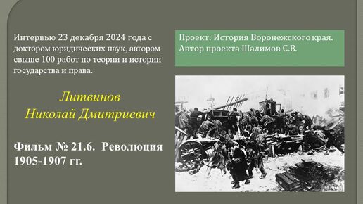 Фильм № 21.6. Революция 1905-1907 гг. Проф. Литвинов Н.Д.