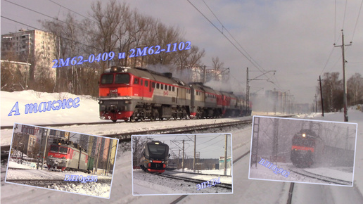 Два тепловоза, электровозы и электрички, 2М62-0409 и 1102, ВЛ10у538 и 902, а также ЭП2ДМ