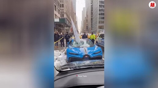 Огромная сосулька отколовшаяся от небоскрёба пронзила спорткар в Нью-Йорке