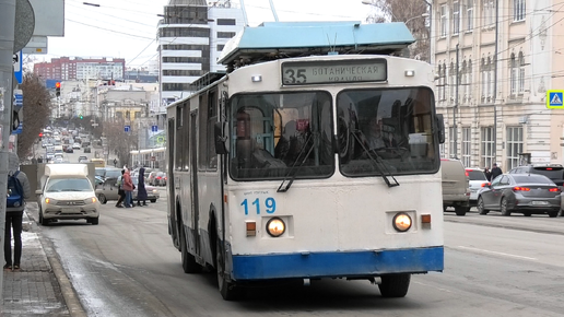 Троллейбус Екатеринбурга ЗиУ-682 КР Иваново борт. №119 маршрут 35 на ост. "Гостиница Центральная"