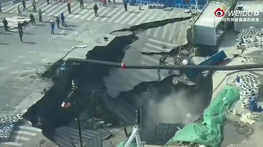 Рабочие ошалели: в Шанхае на участке строительства метро обрушилось дорожное покрытие