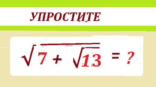 Упростите выражение с радикалами: √(7 + √13)