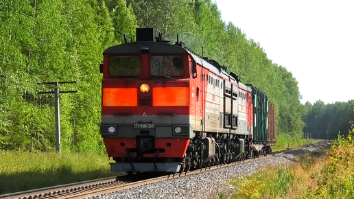 2ТЭ10МК-3347 с небольшим грузовым поездом