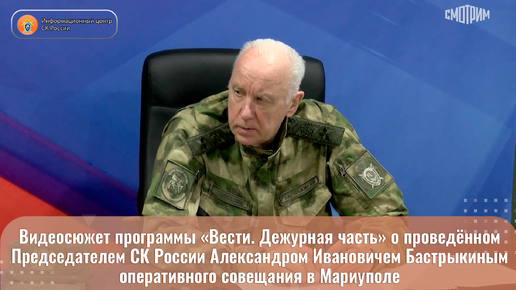 Видеосюжет программы «Вести. Дежурная часть» о проведённом Председателем СК России А.И. Бастрыкиным оперативного совещания в Мариуполе