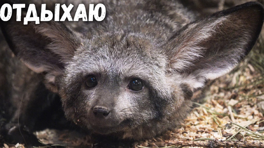 Большеухая лисица прилегла отдохнуть. Новосибирский зоопарк
