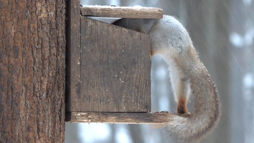 Снегопад. Кормлю белок. Зарисовка