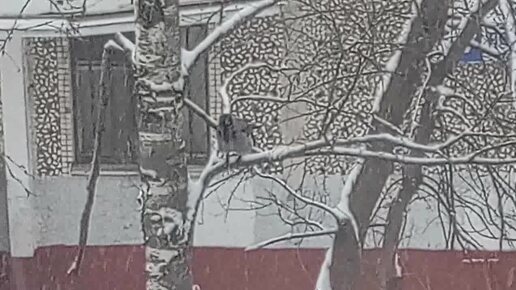 HD Серая ворона на ветке. В снегопад. Без звука. VID_20260212_125219