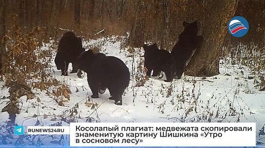 Косолапый плагиат: медвежата скопировали знаменитую картину Шишкина «Утро в сосновом лесу»