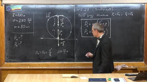 Задача на определение силы давления с которой летчик будет давить на сиденье.