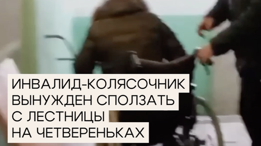 Инвалид вынужден сползать по лестнице на коленях.