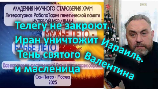 Телегу не закроют. Иран уничтожит Израиль. Тень святого Валентина и масленица