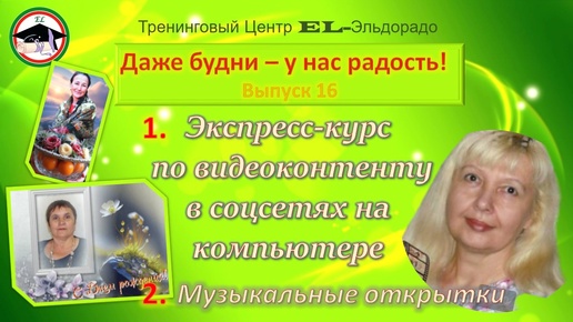 Выпуск 16 Даже будни - у нас радость. Курс по видеоконтенту. Поздравительные музыкальные открытки. Курсы - возможность для тех, кому 55+++