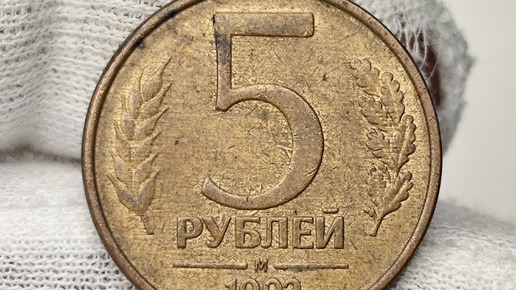 5 рублей 1992 года. М. Цена стоимость монеты разновидности