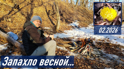 Поход в лес на о. Русский в середине февраля 2026 г., идём снимать фотоловушки