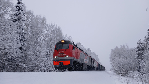 2ТЭ25КМ-0753 "От Коми до Китая" с грузовым поездом и приветливой бригадой