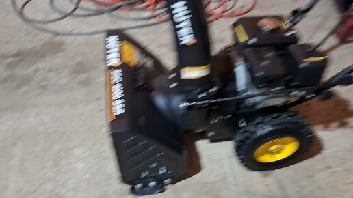 Снегоуборщик HUTER 4000 кидает мокрый снег.