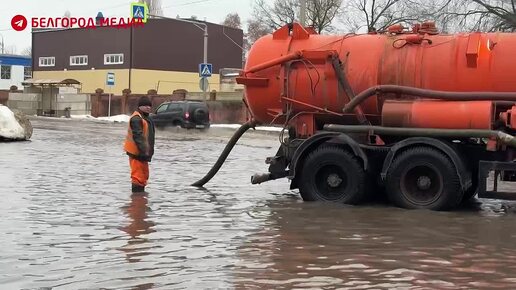На дорогах Белгорода в результате таяния снега и проливного дождя образовалось много больших луж