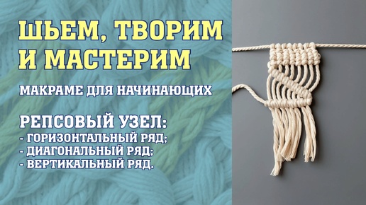 Макраме для начинающих: репсовый узел. Горизонтальный, диагональный и вертикальный ряды.