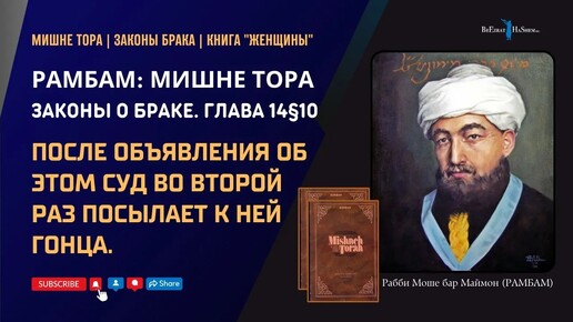 После объявления об этом суд во второй раз посылает к ней гонца | РАМБАМ. Законы Брака 14§10