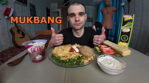 МУКБАНГ БИФШТЕКС / КУРИНОЕ ФИЛЕ / МАКАРОНЫ / ОВОЩИ / СОУС СМЕТАННО - ЧЕСНОЧНЫЙ / ЧИПСЫ / ПУДИНГ ШОКОЛАДНЫЙ / ЕДА / АСМР