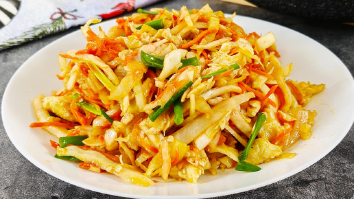Капуста с яйцами на сковороде. Вкусный и быстрый обед