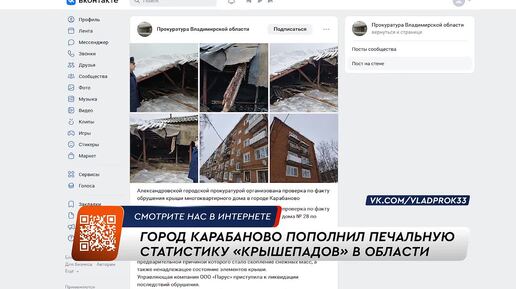Город Карабаново пополнил печальную статистику «крышепадов» в области