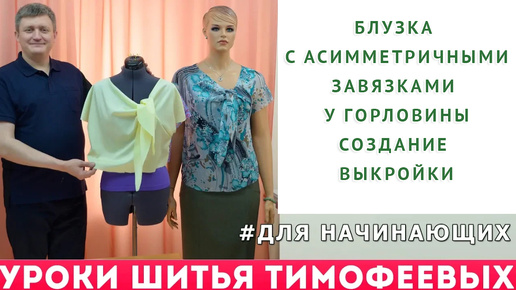 Блузка с асимметричными завязками у горловины, создание выкройки для начинающих