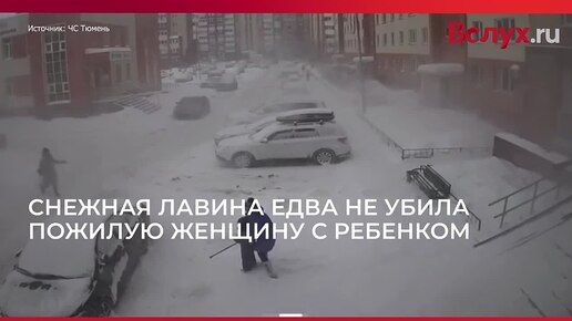 «Едва не завалило заживо»: в Тюмени снег с крыши рухнул у ног женщины с ребёнком