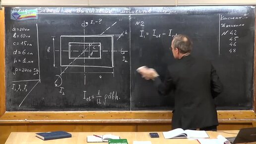 Задача на определение момента инерции плоской пластины прямоугольной формы с прямоугольным вырезом вокруг трех осей