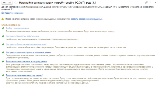 1С:ITILIUM + 1С:ЗУП 3.1. Пошаговая настройка синхронизации данных
