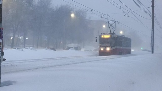 ❄ Трамваи увязли в снегу на Металлургов в Туле 19 февраля