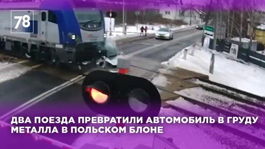Превратили в груду металла: два поезда снесли застрявшую на рельсах машину в польском Блоне
