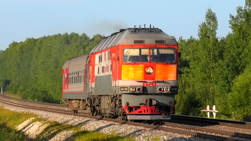 ТЭП70-0443 с пригородным поездом Микунь — Мадмас
