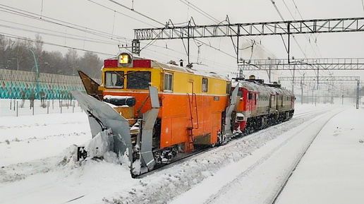 Зима на Московском центральнои кольце. Снегоочистители разных поколений, тепловозы 2М62У, 2ТЭ25К и 2ТЭ25Км.