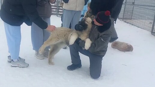 Кавказская овчарка Снежинка проходит социализацию в питомнике