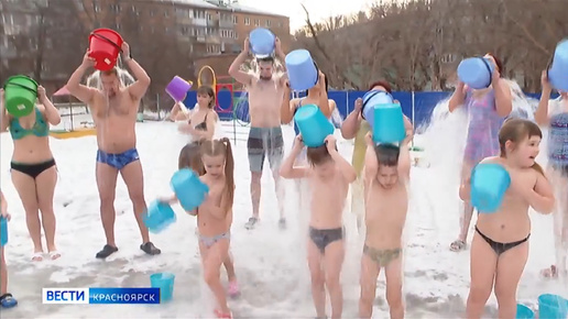 В Красноярске малыши отметили наступающий праздник 23 февраля закаливанием