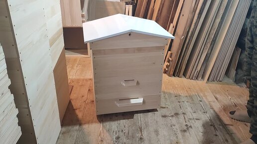 Улей Дадан 16рам из липы, высокое сетчатое дно, двускатная белая крыша